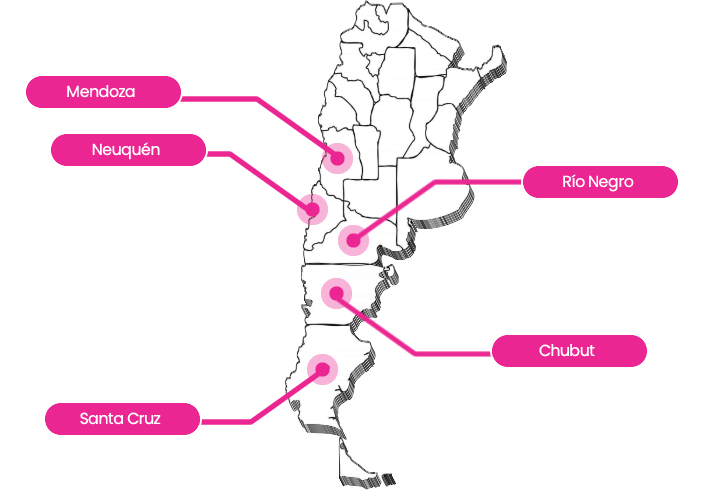 Neuquén, Mendoza, Río Negro, Santa Cruz y Chubut a través de diferentes tipos de instalaciones: Redes propias de fibra óptica, radioenlaces e internet satelital. Desarrollamos obras de conectividad a medida para localidades, centros operativos, barrios y municipios a través de nuestra empresa propia de infraestructura AWSE.